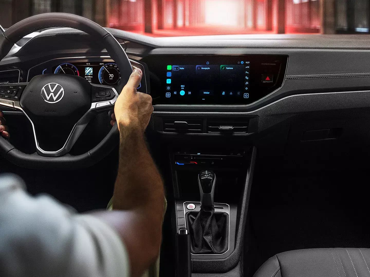 Conectividade: central VW Play de 10 polegadas com espelhamento sem fio e carregador por indução.